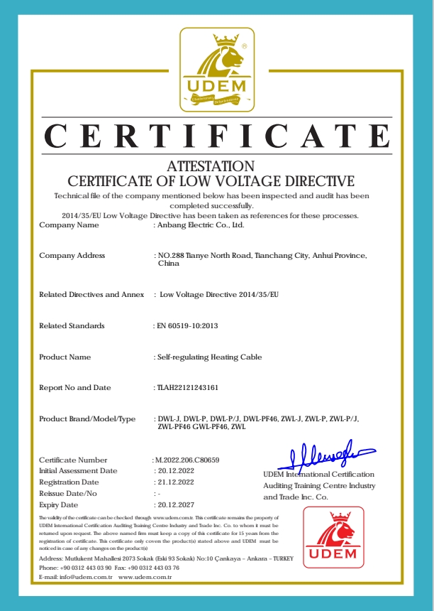 安邦電氣股份有限公司,總部位于北京市長安街,成立于2004年,注冊資金10088萬。安徽生產(chǎn)基地占地面積63000平方米,擁有66套各類生產(chǎn)線,其中進(jìn)口生產(chǎn)線6套。國家高新技術(shù)型企業(yè),滁州市市長質(zhì)量獎企業(yè),專精特新“小巨人”企業(yè),擁有國家知識產(chǎn)權(quán)局授權(quán)的45項專利,其中發(fā)明專利28項 , 主筆《太陽能熱利用自限溫電熱帶安裝規(guī)范》行業(yè)標(biāo)準(zhǔn),參編《自限溫電伴熱帶》國家標(biāo)準(zhǔn)、《工業(yè)和商業(yè)用電阻式伴熱系統(tǒng)》國家標(biāo)準(zhǔn)、《太陽能熱利用自限溫電熱帶》行業(yè)標(biāo)準(zhǔn)、《爆炸性環(huán)境 電阻式伴熱器》國家標(biāo)準(zhǔn)等7項國家標(biāo)準(zhǔn)。企業(yè)通過UL認(rèn)證,國家強(qiáng)制性 CCC產(chǎn)品認(rèn)證,ISO9001質(zhì)量管理體系認(rèn)證,ISO14001環(huán)境管理體系認(rèn)證,ISO45001職業(yè)健康安全管理體系認(rèn)證,Q/SHS0001.1健康、安全與環(huán)境管理體系認(rèn)證,歐盟防爆ATEX認(rèn)證,歐盟CE認(rèn)證,RoHS認(rèn)證,俄羅斯海關(guān)聯(lián)盟認(rèn)證,國家防爆電氣CCC證書。產(chǎn)品系列:集膚伴熱系統(tǒng)、電伴熱系統(tǒng)、電加熱器、電地暖系統(tǒng)、集儀器儀表、電線電纜、高低壓配電柜(箱)、電纜橋架、閥門管件等等設(shè)計、制造、銷售。產(chǎn)品應(yīng)用于航天航空、軍工、石油、石化、天然氣、機(jī)場、化工、鋼鐵、隧道、消防、養(yǎng)殖、融雪化冰、室內(nèi)供暖、國家電網(wǎng)及眾多電廠等等國家重點工程。出口美國、英國、德國、俄羅斯、韓國、日本、哈薩克斯坦、烏克蘭、伊朗等眾多國家。